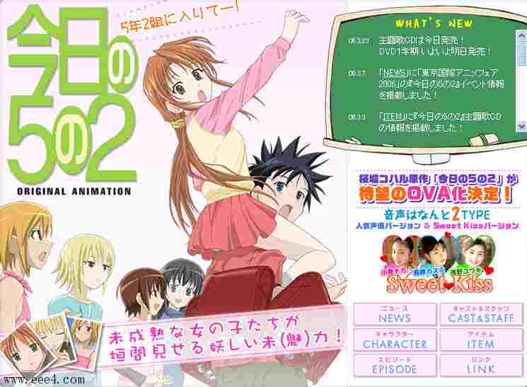 同名原作《今日的5年2班》是一部发行量超过20万册的人气漫画,连载于《周刊YOUNG JUMP》,从范畴上应该算是青年漫画吧(至少不是普通的少年漫),这也意味着原作是有那么一点点H的。作者樱场コハル算的上是《YOUNG JUMP》上的王牌之一,目前的连载作品是《みなみけ》(又是一部早熟小学生群体向的作品)。《今日的5年2班》的最大卖点就是形形色色的“萌”系小学生和她们争风吃醋,并且有那么一点点H的日常生活。主人公佐藤丽由塔是就读于小学5年2 班的小学生。和青梅竹马的小泉千佳以及其他伙伴们过着热闹的每一天。但是,5年2班可不只是一个简单的小学5年级班级。「青梅竹马」?「眼镜娘」?「元气娘」?「扑克脸」?「纯情娘」等,“萌”力四射的个性女生们上演了一出又一出让人心跳不已的好戏……(原文翻译如此,写不下去了OTZ)。作为樱场老师作品的首次动画化,无论制作方和FANS们均投入了极大的热情,声优阵容强到飞起,以下是在录音棚中对她们进行的一次简单的访谈,来看看有哪些熟面孔吧
